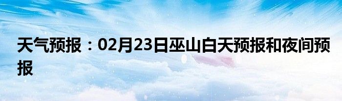 大家好,我是天气预报君。02月23日巫山白天天气预报和夜间天气预报很多人还不知道,现在让我们一起来看看吧!