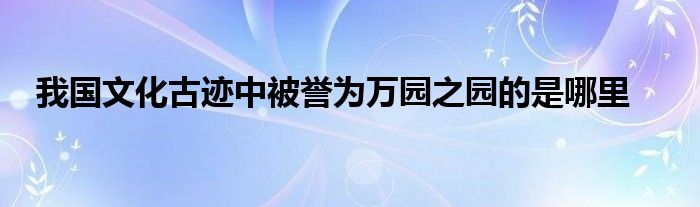 大家好,小耶来为大家解答以上的问题。我国文化古迹中被誉为万园之园的是哪里这个很多人还不知道,现在让我们一起来看看吧!