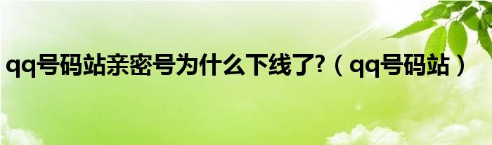 大家好,小豆豆来为大家解答以上的问题。qq号码站亲密号为什么下线了?,qq号码站这个很多人还不知道,现在让我们一起来看看吧!